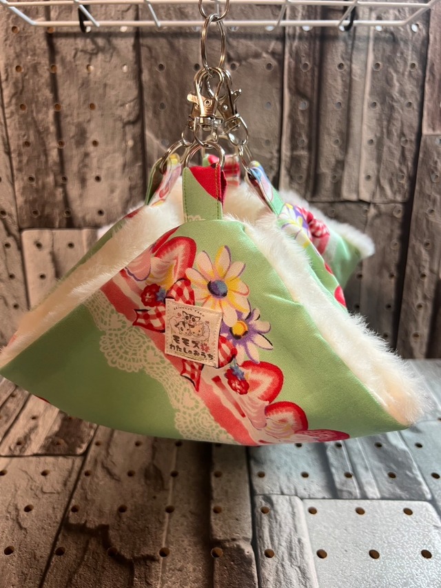 素敵な作家さん(モモズとわたしのおうち) のハンモックになります✨ しっかりした作り、フクモモちゃん達が安全に使えるよう、こだわって作製されている商品です! フクモモちゃんの大好きなラビットファーに包まれてこれからの季節は暖かく、フクモモちゃん達も喜んでくれると思います❤️ こちらの柄は1点のみとなります! ●素材 表地(柄面)→綿 裏地→ラビットファー サイズ→18×18サイズ ハンドメイドですので多少の誤差はありますのでご了承ください。 ✨作家さん・当店よりお願い✨ 一つ一つ心を込めてお作りしていますがあくまで素人のハンドメイド作品ですので縫い目の歪みなどがある場合もございます。 縫い目の歪み等での返品、交換は致しかねます。 既製品のような完璧さをお求めの方はご購入をお控えください。 ハンドメイドへのご理解のある方のご購入をお願い致します。 爪が引っかからないように縫い目が表に出ないように注意して作成しておりますが、消耗品となりますので使用中にほつれや破れなどが発生した場合はお取替えください。 怪我を防ぐ為にも、定期的に新しいものに交換をしてください。 本品を使用中に生じた事故、ケガ、破損等につきましては、責任を負いかねます。